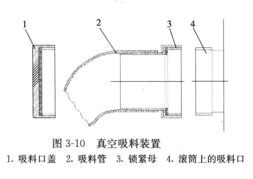 2、裝料:打開滾筒加料口,將注射過的肉塊及其他腌制料一起加入滾筒,蓋上加料口的蓋子。注意:不能在滾筒中直接加入粉狀的物料,以防把粉狀的物料吸入到真空泵中而損壞設(shè)備。如果要用真空吸料方式裝料(圖3-10),需要先把固態(tài)的物料從滾筒的進料口處加進滾筒內(nèi),再把流體物料從吸管吸入滾筒。方法是:取下吸料口蓋,把吸料管的下端插入到料筒內(nèi),把上端的鎖緊螺母和滾筒上的吸料口相連接,然后啟動真空泵,把肉料吸入到滾筒內(nèi)。